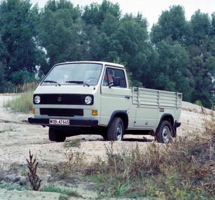 T3 mit 16-Zoll-Rädern als Pritschenwagen: Für extremste Geländeeinsätze gab es den T3 syncro ab 1987 sogar mit 16 Zoll großen Rädern und umfangreichen Modifizierungen am Fahrwerk und an der Karosserie, größer dimensionierten Bremsen und einer serienmäßigen Hinterachssperre. Die Verstärkungen erhöhen die Nutzlast im Gelände auf eine Tonne. Die Bodenfreiheit wuchs auf 246 Millimeter (+25mm). 2.138 dieser Heavy-Duty-Allradler – von insgesamt 45.478 gebauten T3 syncro – verließen bis 1992 die Grazer Hallen und begleiteten Expeditionen, Weltreisende, Forst- und Handwerksbetriebe. Nur rund 60 dieser Volkswagen auf dem Level von Expeditionsfahrzeugen wurden als Pritsche mit Ladefläche aufgebaut, betrug doch der Mehrpreis für den syncro-Antrieb und den 16-Zoll-Umbau rund 50 Prozent gegenüber der heckgetriebenen Pritschenvariante. Heute einen solch frühen Allrad-Pickup als Oldtimer zu finden, ist kaum mehr möglich. Aktuell wird eine noch seltenere DoKa von 15 jemals gebauten auf Kleinanzeigen angeboten.