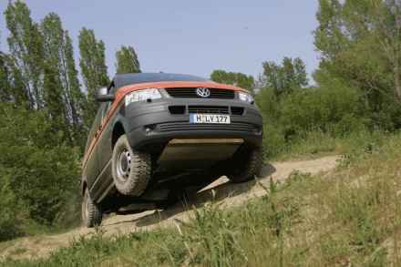 2004 kommt der T5 als 4MOTION auf den Markt: 2003 stellte Volkswagen Nutzfahrzeuge als Weltpremiere den T5 vor. Stärkere Motoren und vor allem das elektronische Stabilitätsprogramm ESP verlangten nach einem neuen Allradsystem. Das stand ab 2004 mit der ebenfalls neuen Bezeichnung 4MOTION bereit. Das zentrale Element des 4MOTION-Systems war nun eine in einem Ölbad laufende Lamellenkupplung, die axial zusammengedrückt wurde. Den Druck erzeugten zwei Pumpen. Je mehr Druck auf den Lamellen lastete, desto größer war die Kraftübertragung und damit die Einbindung der Hinterachse. Dank der schnellen Reaktionszeit der Lamellenkupplung war es nun möglich, die Hinterachse erst dann stufenlos einzubinden, wenn an einem der Vorderräder ein Traktionsverlust auftrat. Im Normalbetrieb hatten die als Transporter, Caravelle, Multivan und California lieferbaren 4MOTION-Modelle deshalb Frontantrieb. Und das sparte Kraftstoff.