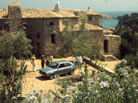 Der Audi 50 während seiner Pressevorstellung im Sommer 1974 auf Sardinien.