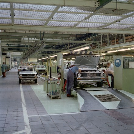 Produktion des Polo und des Derby in den 1970er Jahren in Wolfsburg.