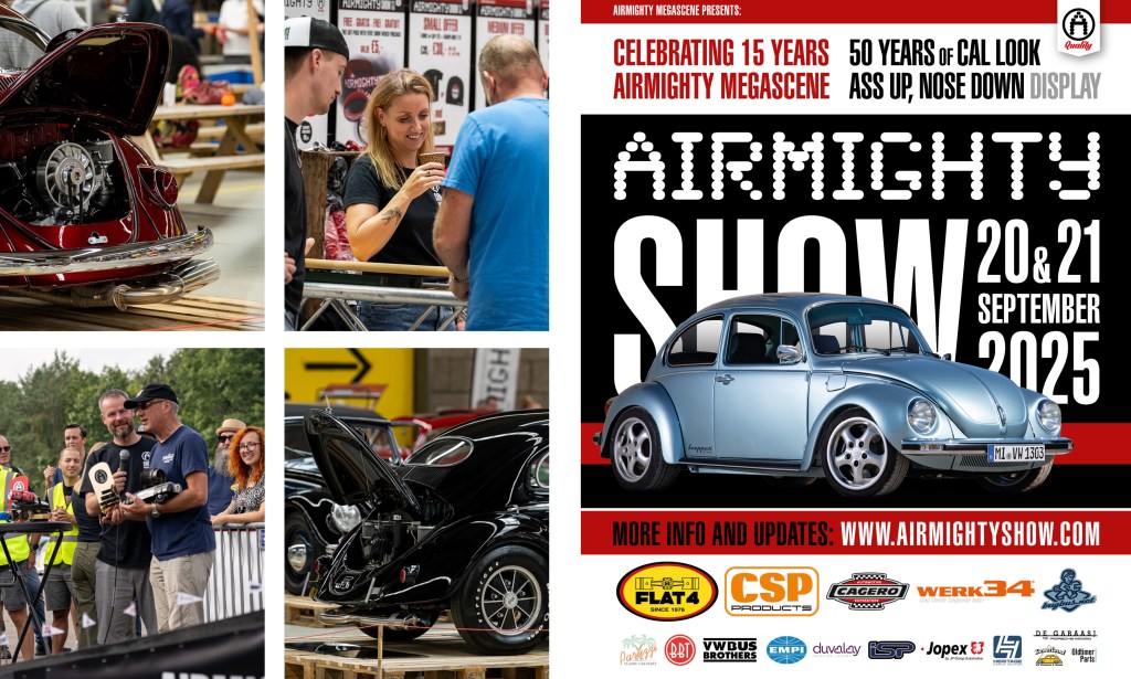 With special outdoor aircooled VW parking, on-site Camping, VW Club displays, food-corner, and vendors running a lively swapmeet, the third edition of the AIRMIGHTY SHOW will take place on 20-21 September 2025, staged inside a brilliant venue, a former aircraft Hangar 11 in Enschede (near the German border) in the Netherlands.