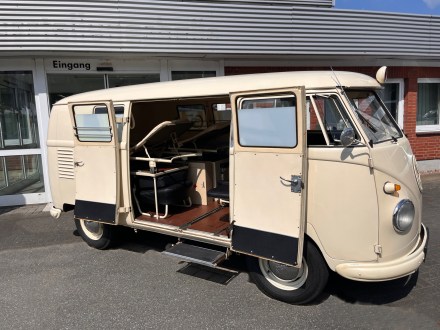 Ausgangspunkt war ein Samba-Bulli in stark restaurierungsbedürftigem Zustand. Nach einem vollständigen Neuaufbau kommen Komponenten aus dem Volkswagen e-up! sowie aus der ID. Familie, unter anderem aus dem ID.3, zum Einsatz. Der Elektromotor leistet 61 kW (83 PS) und wird von einem 58 kWh-Akku gespeist, der mit bis zu 100 kW Ladeleistung nachgeladen werden kann. Das maximale Drehmoment von 212 Nm steht vom Start weg zur Verfügung.