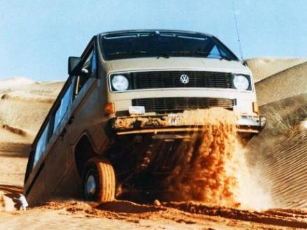 Jetzt braucht man eigentlich nur noch einen offiziellen Entwicklungsauftrag, aber der fehlt immer noch, denn die VW- und Ölkrise vermasselen Mayer die Bereitschaft der Konzernoberen zu solch einem Projekt. Die haben ganz andere Sorgen. Also baut das Team der VW-Nutzfahrzeug-Entwicklung unter der Leitung von „Transporter-Mayer“, den ersten Prototyp eines allradgetriebenen T2 mit zuschaltbarem Frontantrieb. Mit einem solchen Fahrzeug gelingt Mayer die Durchquerung der Sahara. Der VW-Ingenieur Henning Duckstein fuhr ebenfalls mit einem Allrad-T2 durch die für Radfahrzeuge als unpassierbar geltende Grand Erg Oriental im östlichen Algerien von Deb-Deb nach El-Oued. Ritterschlag für den wackeren Recken T2 sozusagen.