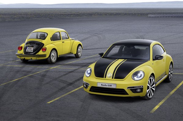 Im Hinblick auf die Optik hat Volkswagen das Konzept des 70er-Jahre-GSR mit dem Beetle GSR konsequent in die Neuzeit transferiert: Analog zum GSR von einst ist die Karosserie der Neuauflage in Gelb gehalten. Die Hauben des 73er Käfers waren in mattem Schwarz lackiert, ebenso die Stoßstangen; schwarze Zierleisten unterhalb der Seitenscheiben und schwarz-gelbe Seitenstreifen über den Schwellern komplettierten den Look. Gelb und Schwarz schlagen nun die Brücke über die Jahrzehnte: Schwarz sind beim neuen Beetle GSR ebenfalls die Hauben, darüber hinaus aber auch das Dach und die Außenspiegelkappen. Schwarz-gelbe Streifen mit den Buchstaben „GSR“ individualisieren oberhalb der Seitenschweller die Silhouette. Gelb lackierte Stoßfänger im neuen R-Line-Design und ein natürlich gelb-schwarzer Heckspoiler komplettieren die GSR-Optik. Anders als der Käfer, kann der Beetle GSR alternativ in „Platinumgrey / Schwarz“ bestellt werden.