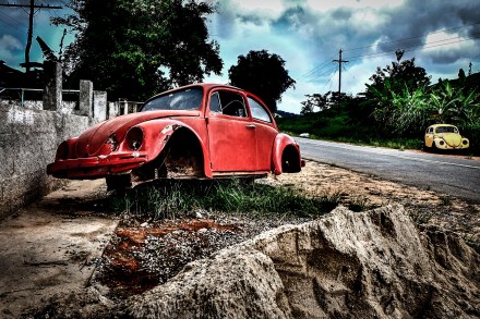 An der SP 068, der Verbindungsstraße zwischen Rio und Sao Paulo warten zahlreiche Käferwracks auf ihre Auferstehung.