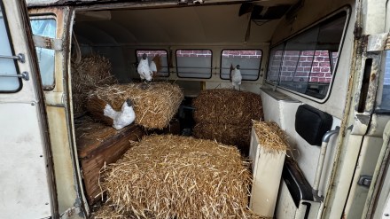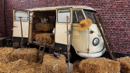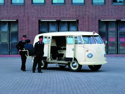 Dieses Fahrzeug blickt auf eine außergewöhnliche Biografie zurück. Nach seinem Einsatz als Krankenwagen diente er viele Jahre als Unterstand für Hühner, bevor er 2009 in die Sammlung von Volkswagen Nutzfahrzeuge Oldtimer aufgenommen wurde.
