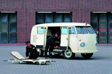 So unterschiedlich die drei gezeigten Fahrzeuge heute erscheinen mögen, so verbunden sind sie durch ihren gemeinsamen Ursprung im Jahr 1956 und im ersten Produktionsjahr des Werks Hannover. Der T1 Pritschenwagen steht für den klassischen Arbeitseinsatz des Bulli: konzipiert für Handwerk und Gewerbe, gebaut für den täglichen Transport und den wirtschaftlichen Wiederaufbau der Nachkriegszeit. Die beiden T1 Krankenwagen zeigen dagegen den frühen Beitrag des Bulli zum medizinischen Dienst und als Einsatzfahrzeug direkt ab Werk. Während ein Exemplar über Jahrzehnte zuverlässig als Betriebskrankenwagen im industriellen Umfeld im Einsatz war, führte der Weg des zweiten Fahrzeugs weit abseits seiner ursprünglichen Bestimmung – vom Krankenwagen zum Hühnerstall auf einem Bauernhof, ehe er als Zeitzeuge in die Sammlung von Volkswagen Nutzfahrzeuge Oldtimer zurückkehrte. Zusammen erzählen die drei Fahrzeuge von der Vielseitigkeit, Robustheit und Langlebigkeit des frühen VW Transporters – und davon, wie unterschiedlich ein Bulli Leben verlaufen konnte, obwohl alle im selben Jahr und am selben Standort entstanden sind.