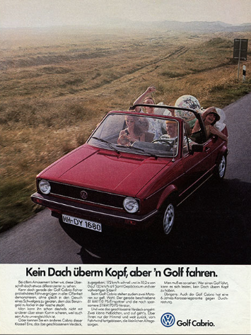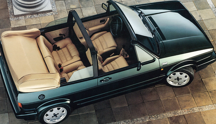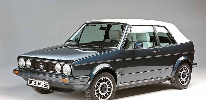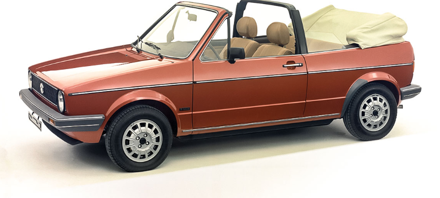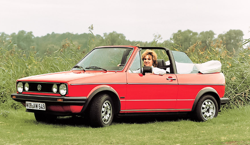 „Sonne, Mond und Cabrio“ lautet der Werbeslogan, als 1979 die offene Variante des Golf I präsentiert wird. Besonders charakteristisch: der feststehende Bügel über der B-Säule. Diese aufwändige Konstruktion ist eine Reaktion auf die Sicherheitsdiskussion der 1970er Jahre. Der Bügel bietet einen optimalen Umlenkpunkt für die vorderen Sicherheitsgurte und führt die Seitenscheiben sicher und geräuscharm.