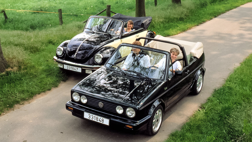 Die Gemeinschaftsentwicklung von Volkswagen und Karmann wird ab 14. Februar 1979 in Osnabrück produziert und stellt vom Start weg den legitimen Nachfolger des berühmten Käfer Cabriolet dar. Der offene, wie sein Vorgänger ebenfalls viersitzig angelegte Golf muss in große Schuhe schlüpfen – und füllt sie schon kurz nach seiner Präsentation aus, wie die Verkaufszahlen belegen. Insgesamt werden 392.000 Einheiten des VW Golf I Cabriolet gebaut.Seine Motorisierungen lassen Käfer Cabriolet-Fahrer erblassen, denn es gibt gleich zu Produktionsbeginn zwei leistungsstarke Benzinmotoren: einen 1,5-Liter-Motor mit 51 kW (70 PS) in der GL-Ausstattung (auch mit Automatik lieferbar) – sowie in der GLI-Ausführung für besonders dynamisch orientierte Fahrer der aus dem GTI bekannte 1,6-Liter-Motor mit 81 kW (110 PS). Das Golf Cabriolet GLI ist an den Kotflügel-Verbreiterungen des Golf GTI zu erkennen.
