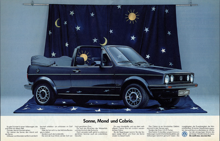 Zur Premiere 1979 stieß das Golf Cabriolet zunächst bei vielen auf Skepsis: ein offener Golf? Mit Überrollbügel? Schnell aber wird klar: Das Erdbeerkörbchen, so sein Kosename, setzt neue Maßstäbe, wird zu einem der erfolgreichsten Cabriolets der Welt und entwickelt sogar Kult-Appeal – durch zahlreiche Auftritte in Film und TV. Und über Generationen hinweg. Tja, der sachliche Golf als emotionale Open-Air-Version: eine überraschende Idee, die grandios zündete.