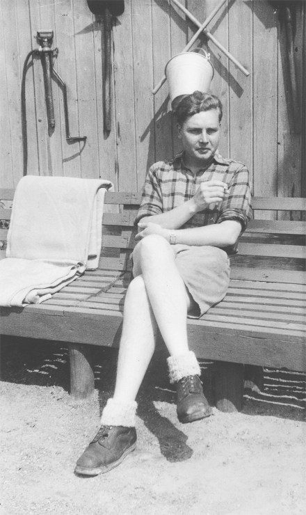 Henk ‚t Hoen (1922 – 2006), hier an einem Sonntag im Lager 12, September 1943. Er war als niederländischer Student von Mai 1943 bis April 1945 im erzwungenen Arbeitseinsatz im Volkswagenwerk.