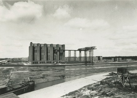 Das Volkswagenwerk mit Blick auf Kraftwerk und Hafen.