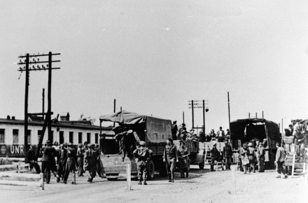 Ehemalige Zwangsarbeiter, befreite KZ-Häftlinge und Kriegsgefangene, sogenannte Displaced Persons, die in der damaligen „Stadt des KdF-Wagens“ auf ihre Repatriierung warten und von der Nothilfe- und Wiederaufbauverwaltung der Vereinten Nationen (UNRRA = United Nations Relief and Rehabilitation Administration) betreut werden.