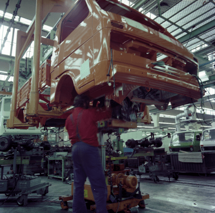 - Optimierte Einbaulage des Motors bringt Platz für einen dritten Sitz im Fahrerhaus